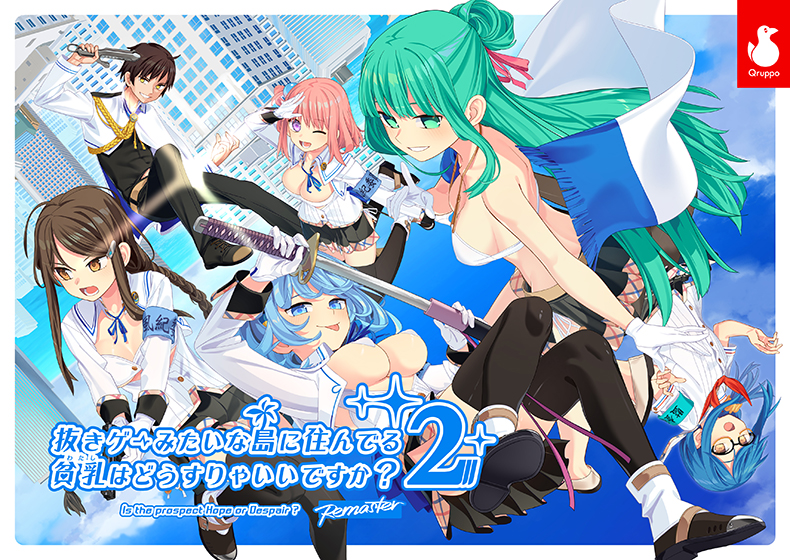 「抜きゲーみたいな島に住んでる貧乳(わたし)はどうすりゃいいですか? 2」Remaster本編に、サウンドトラックデータが付属したセット版も登場!!━━・‥…━━・‥…━━・‥…━━・‥…━━・‥…■Remaster新機能一覧・Windows11対応・バックログジャンプ機能を追加搭載・お気に入りボイス登録機能を追加搭載・セーブ/ロードスロットを500まで保存できるように実装━━・‥…━━・‥…━━・‥…━━・‥…━━・‥…それは、あったかもしれないグランドストーリーの後──青藍島を救い、真ドスケベ条例を生み出した主人公……橘淳之介。彼はかの‘‘ドスケベ戦役’’以降、‘‘鋼鉄の6人’’のひとりとして、島の英雄となっていた。激しい戦いの日々を懐かしく思いながら、NLNSの仲間たちと穏やかに過ごす毎日。真の共存を勝ちえ、こんな毎日がこの先もずっと続いていく。──……そう、信じていた。そんなある日のこと。変態紳士の集うSNS‘‘Onatter’’で知り合った友人と、オナホールのデータを交換した淳之介。しかしそのオナホの快感はあまりに凄まじく、シゴく手が光の速さを突破してしまう。そしてたまたま居合わせたSSビックスリーと共に、激しい光に呑みこまれ、別世界へと転移してしまった。その並行世界とは、淳之介が‘‘性帝’’と呼ばれ畏怖され、SS副会長として絶対的な帝位を築いている幻の桃源郷であった。古きドスケベ条例の残る青藍島で、彼らは……。淳之介は無事にもとの世界へと帰還することができるのか?SSビックスリーと共に、新たな戦いが始まる──「――これこそが、マイノリティによる真の復讐である」━━・‥…━━・‥…━━・‥…━━・‥…━━・‥…Qruppo新作が登場!『 ヘンタイ・プリズン 』はこちら━━・‥…━━・‥…━━・‥…━━・‥…━━・‥…Qruppo作品のサウンドトラックが登場!詳細はこちら♪